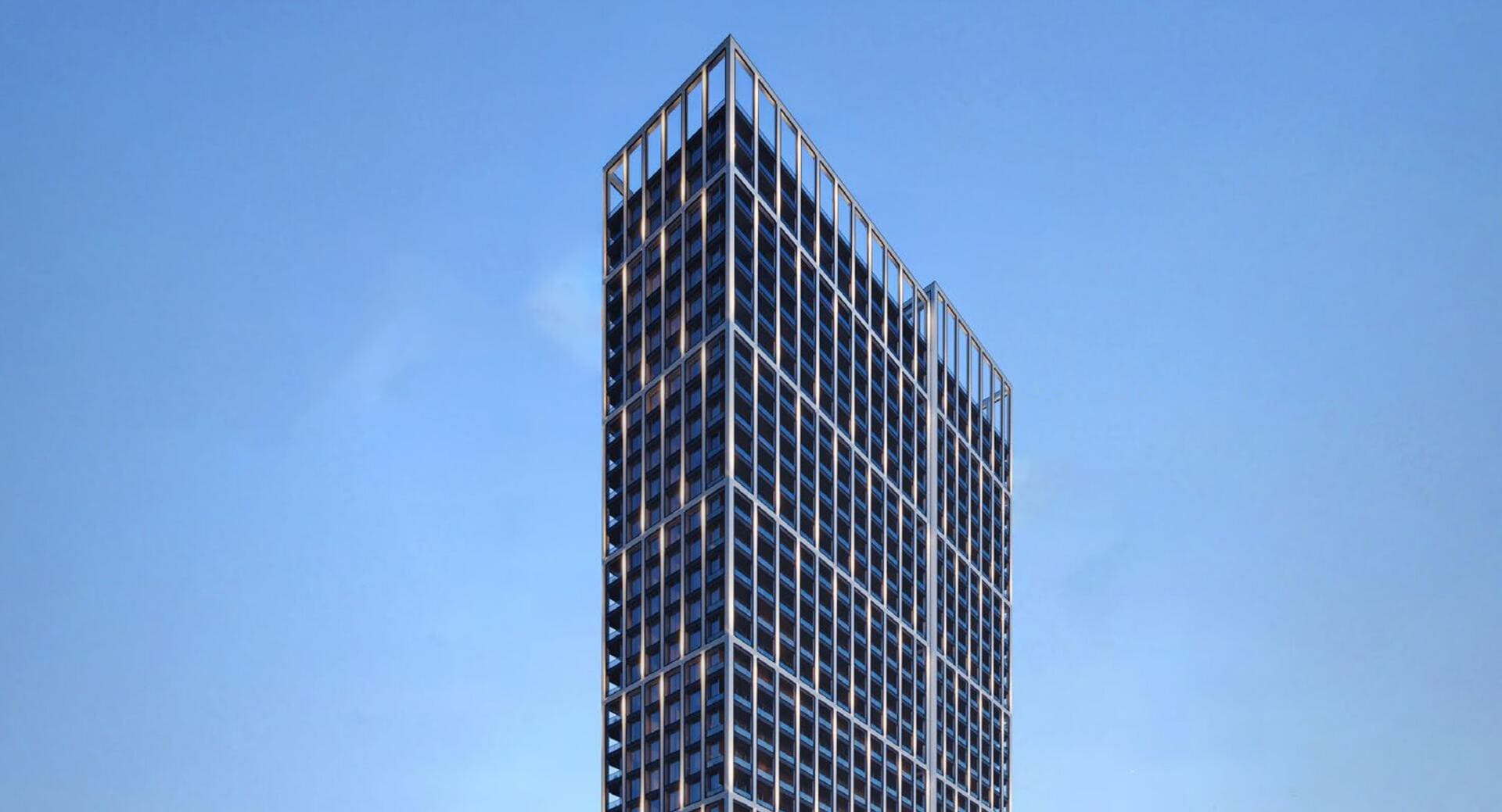 Сочетает выразительный дизайн фасада с ритмичными линиями, панорамным остеклением и продуманной геометрией подиума с ритейлом